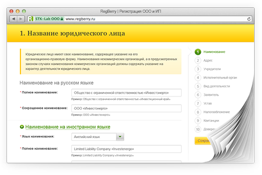 Regberry призван помочь будущему предпринимателю с регистрацией бизнеса, когда тот желает всё сделать собственными силами и без лишних вложений. Данный онлайн-сервис в полном объёме предоставляет инструментарий, который необходим для подготовки заявления на регистрацию ИП или ООО и других необходимых документов. Каждый, кто желает пройти эту процедуру, просто регистрируется на сайте www.regberry.ru и, следуя подсказкам системы, получает доступ к правильно оформленным документам, с возможностью их редактирования и печати.