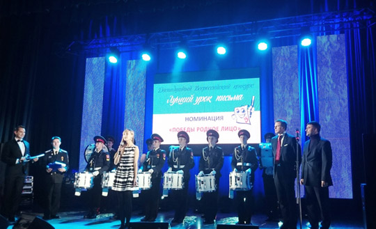 В Московском суворовском военном училище прошла церемония награждения победителей 12-го Всероссийского конкурса «Лучший урок письма», в котором приняли участие около 100 тысяч детей из 82 регионов России. Также был дан старт новому этапу конкурса, который пройдет с октября 2014 года по август 2015 года.