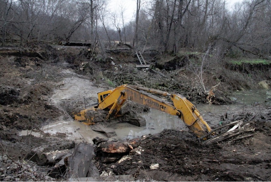 На Голубом озере утонул экскаватор. Инцидент произошел во время берегоукрепительных работ на водоеме, которые ведут по заказу минэкологии. Машина разворотила землю и практически уничтожила водопад, оставив вместо него влажную воронку. Многотонную технику достали с помощью других тяжелых машин.