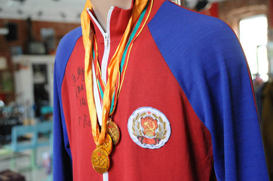 Не остался в стороне и министр спорта Российской Федерации, Виталий Мутко́. В разделе спортивной униформы появилась олимпийка сборной команды России 70-х гг. с гербом РСФСР. Именно в таких советские спортсмены представляли Российскую Федерацию на всесоюзных соревнованиях начиная с 60-х гг. Раритетный экспонат украшает подпись министра.